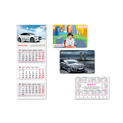 Digitalni tisak mini kalendara na 200 grm papir sa obostranom matt ili sjajnom plastifikacijom i rundanim kutevima. Dimenzije kalendarčića su 55x85mm ili 50x90mm. Količine prema želji kupaca, a cijena na upit.