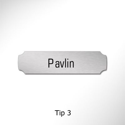 Pločice za vrata izrađene iz graverske plastike pružaju široki način primjene, od natpisa za portafone, kasliće, ulazna vrata i sl. Široka paleta boja i oblika osigurati će zadovoljstvo i najzahtjevnijima. Sve pločice po standardu dolaze sa duplofan ljepljivom trakom kako bi osigurali jednostavno i čvrsto postavljenje, a standardne boje su zlatna i srebrna u sjajnim i mat varijantama. Sve dodatne boje iz široke palete radimo na upit kupca.